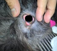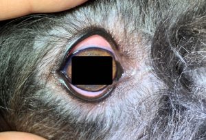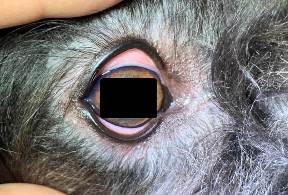 症例は数カ月前に左目のチェリーアイを手術して整復した経歴がある。