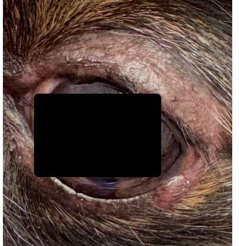 肉芽腫性眼瞼縁は中高齢の犬に発生することのある免疫介在性の疾患であり、治療内容の中心は免疫抑制療法となる。