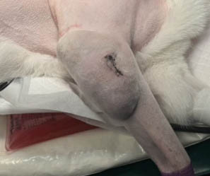 ご家族と相談した結果、断脚による摘出に抵抗があるとのことであったため、足を温存する方向の治療計画を立て、切除を行った。