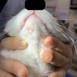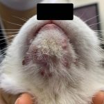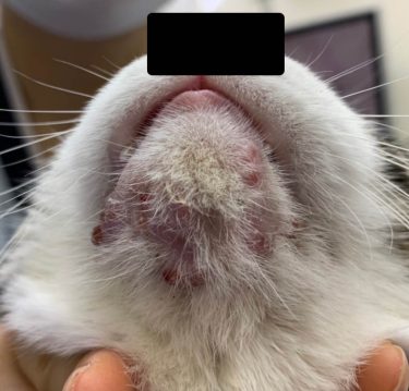 雑種猫の下顎に形成された痤瘡(顎ニキビ、アトピー症候群)☑