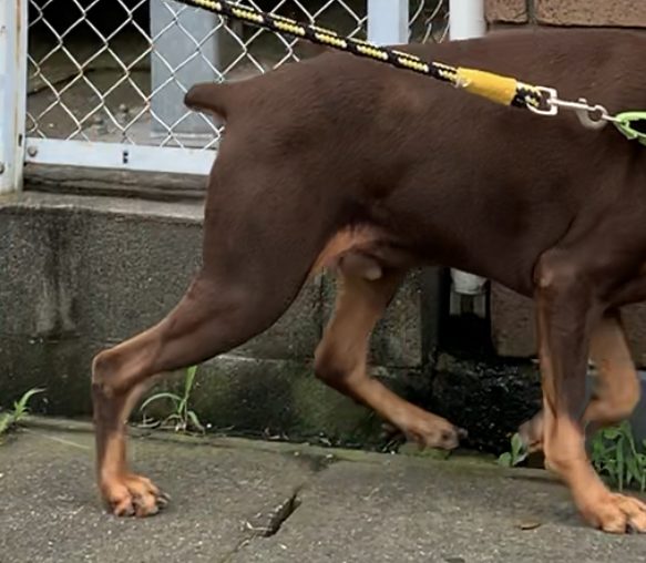 疾患には好発犬種というものが存在する。どの犬種でも起きえるが、特に発生が多い犬種である。ドーベルマンはウォブラー症候群の好発犬種であると同時に、椎間板ヘルニアの罹患がそこまで多い犬種ではない。症例は後肢の歩き幅が大きく、前肢にも跛行を呈している。ウォブラーは尾側頚髄に異常が出るために症状が発生するが、前肢と比較して後肢に症状が重く出ることが多い疾患である。