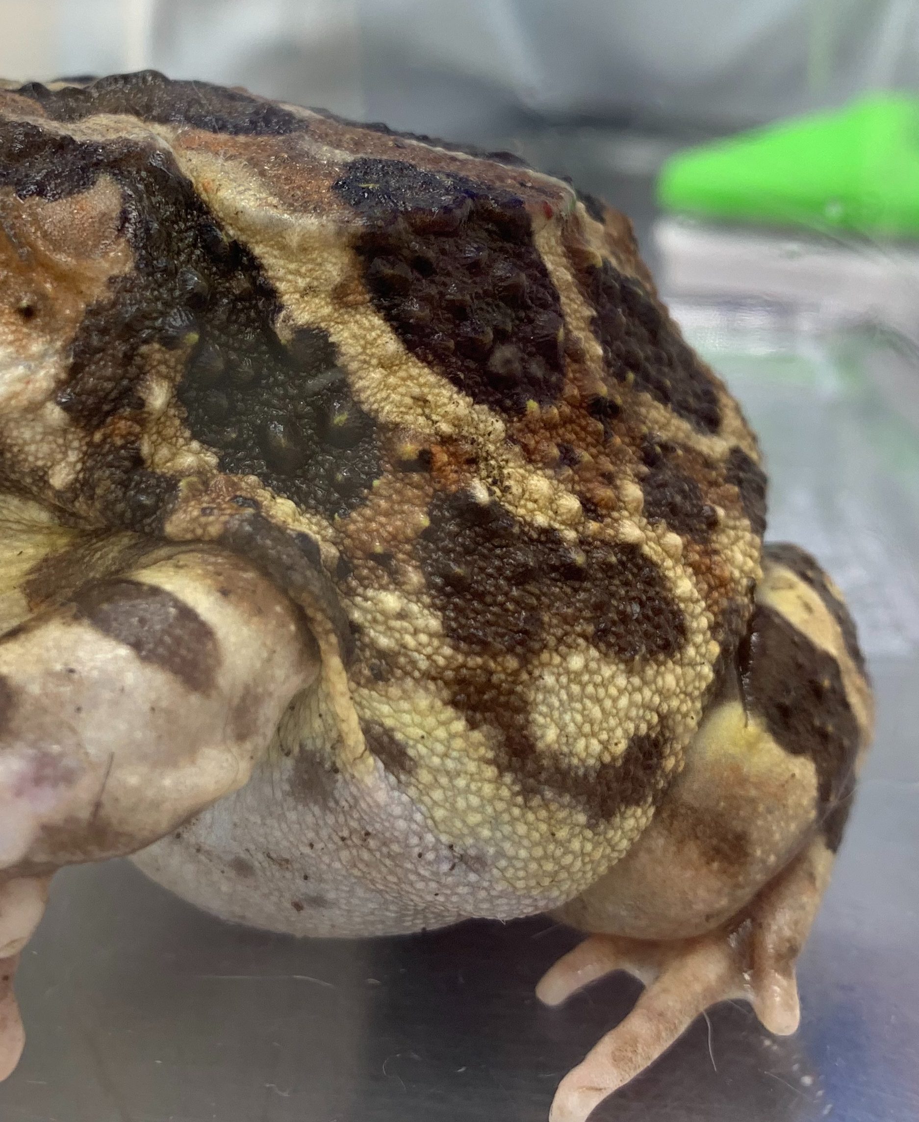 通常、乾燥に弱いツノガエルの飼育に使用する床材として、湿度を保つ目的を込めて水ゴケ、ヤシガラ、両生類用土壌などが用いられる。