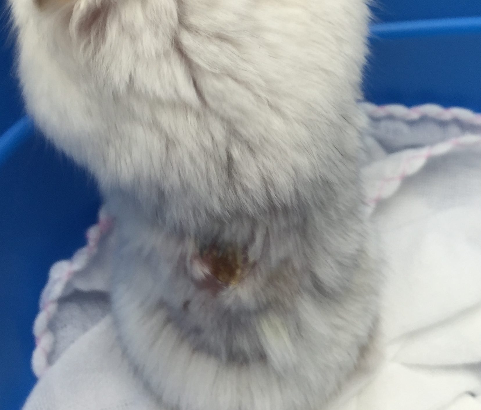 細菌感染は皮膚にできた小さな傷から感染が波及してしまう場合や、不衛生な飼育環境が原因で起きてしまう場合もあります。本症例のようにしこりとして触知されず、べたべたと膿で体がぬれている場合もあります。その場合は膿で湿ってしまうことによる低体温症が併発してしまう場合もありますので、早めの来院をお勧めさせていただきます。