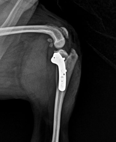 左後肢に対してTPLO手術を実施しました。当院では体格にかかわらず安定した歩行回復を得るため、標準的にTPLOを採用しています。