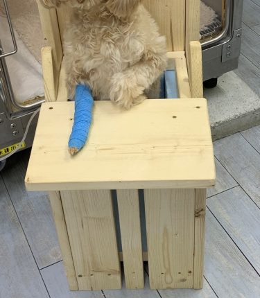抗アセチルコリンレセプターが産生されてしまう重症筋無力症によって起きている巨大食道症という診断なので、基礎となる重症筋無力症に対する内服薬を飲むと同時に、食事が胃まで行くことを助けるために立位で食事をするための台をご家族に製作していただいた。