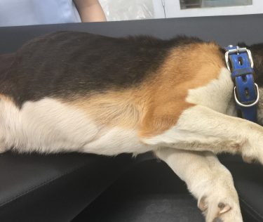 問診の結果、フィラリア症の予防を数年にわたり行っていない可能性が高かったため、酸素吸入を行いながら心エコー検査を実施した