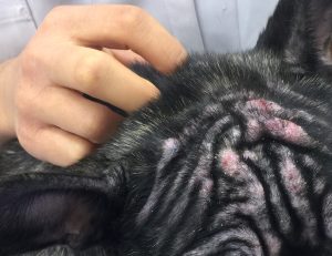 フレンチブルドッグの若齢性ニキビダニ症☑