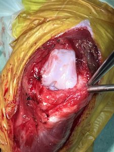 前十字靭帯は完全に断裂しており、損傷した靭帯と内側半月板を除去しました。