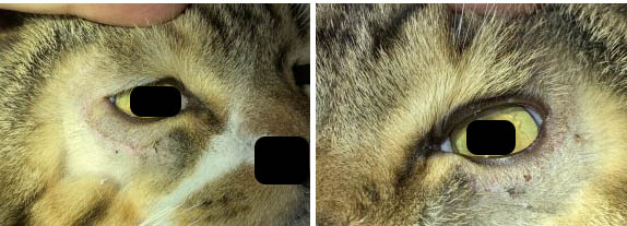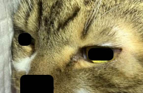縫合後、流涙や羞明は有意に改善し、慢性的に発生していた角膜潰瘍も4日目に消失した。