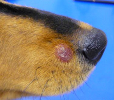 犬皮膚組織球腫は皮膚に生じる良性腫瘍と認識されているが、その由来は表皮内樹状細胞のランゲルハンス細胞の反応性増殖であることが明らかにされている。典型的には3歳未満で好発し、外的刺激を受けやすい頭部や耳介、四肢に好発する傾向がある。脱毛し、半円形の紅い腫脹を形成する特徴的な外見を呈する。無治療で自然退縮することがほとんどだが、必要に応じて免疫抑制剤や外科手術が適応されることもある。
