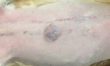 病理診断では第五乳腺内に肥満細胞腫が発見されている。