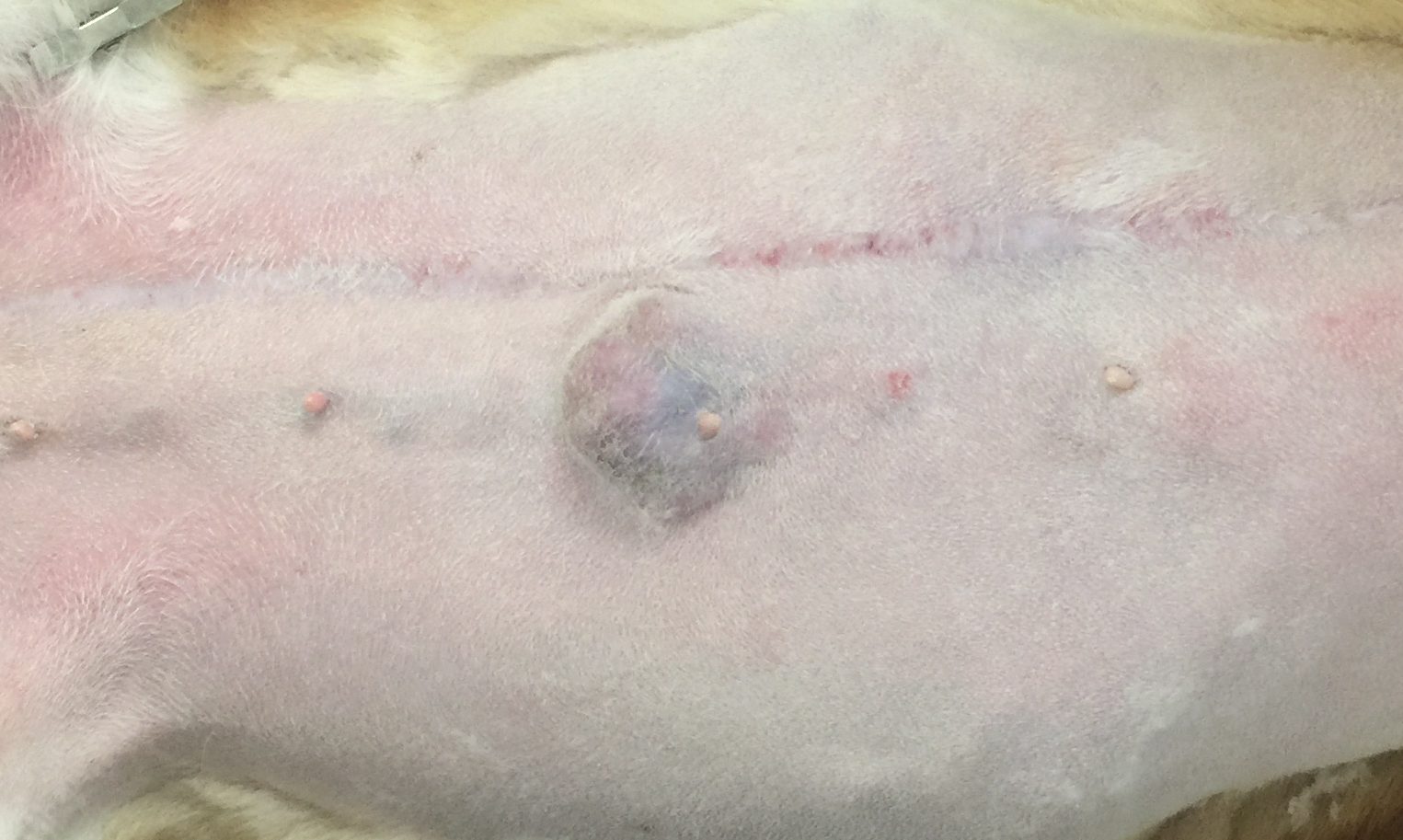 病理診断では第五乳腺内に肥満細胞腫が発見されている。