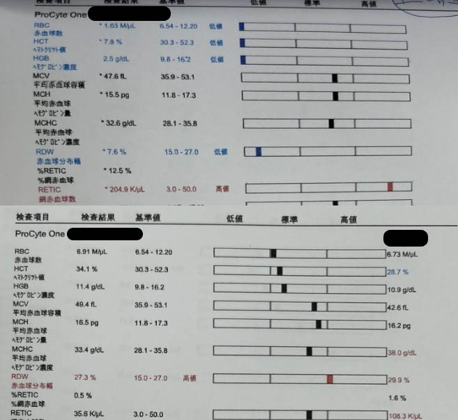 翌日より活動性および食欲は改善し、1週間後の血液検査ではHCT:30.0%であった。