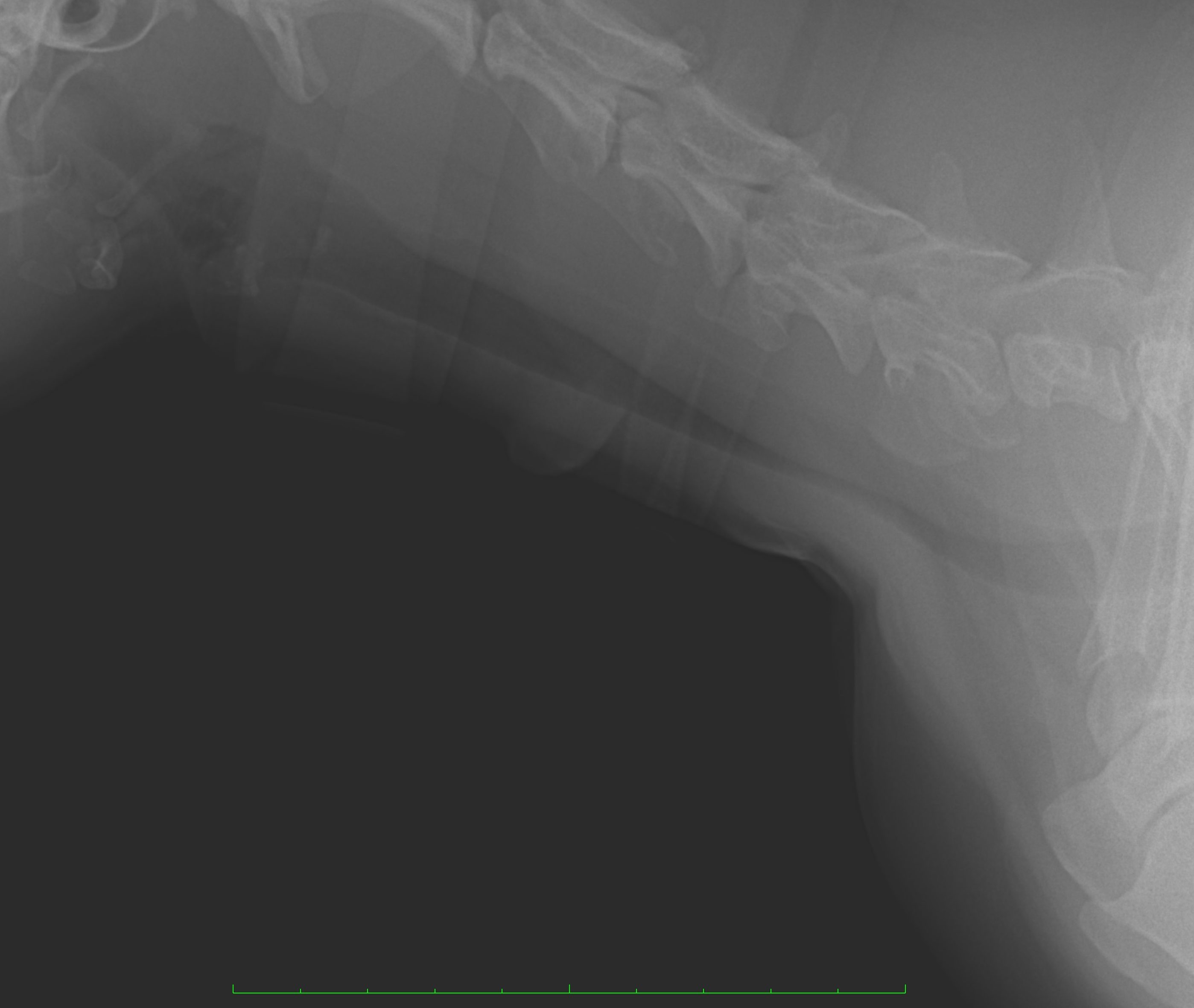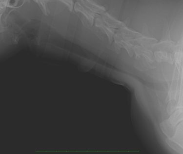 胸部レントゲン検査では、頸部を中心に虚脱した気管が認められました。