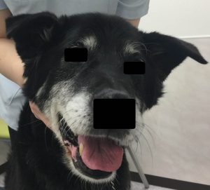 レントゲン検査並びに、徒手検査における開口試験や鼓室包圧迫に対して疼痛を示さないため、高齢犬に多い特発性前庭障害であることが疑われた。