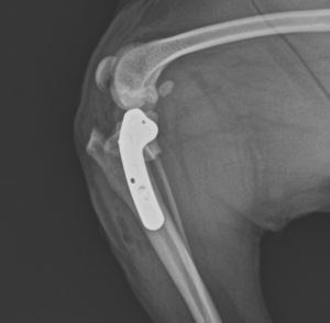 TPLOで使用するプレートやスクリューなどのインプラントは、通常は体内にそのまま留置して問題ありません。
